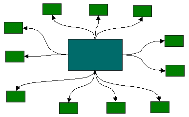 téglalapok) mind közvetlenül kapcsolódnak a kiszolgálóhoz (középső nagy