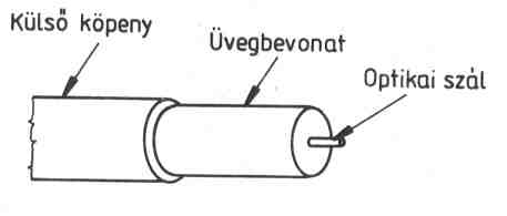 teljesen visszaverődik. A belső optikai szál és a körülötte levő üvegbevonat
